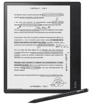 Feito para pensadores, inclui Kobo Stylus 2. Anota, organiza, reduz luz azul. Ouve audiolivros via Bluetooth®, armazena 32GB e ainda é sustentável.