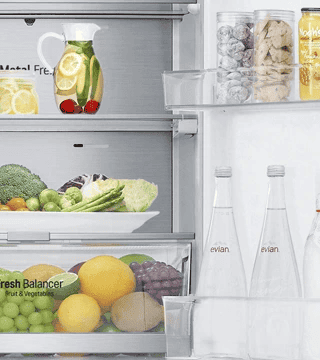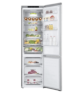 Combinado LG GBB92MBB3P 384L, eficiência A-20%, DoorCooling+™, LINEARCooling™, Wi-Fi, compressor Inverter Linear™ silencioso e design em inox para frescura prolongada.
