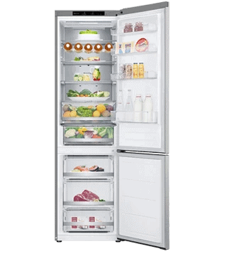 O LG GBV7280BMB alia design elegante, 387L, Door Cooling™, Wi-Fi e eficiência energética B, garantindo refrigeração avançada, silenciosa e eficiente.