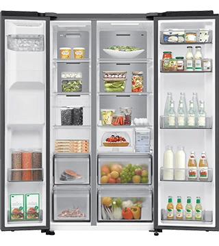 Frigorífico americano 640L com dispensador de água sem canalização, AI Energy e All-Around Cooling. Mais eficiência, conectividade e espaço.