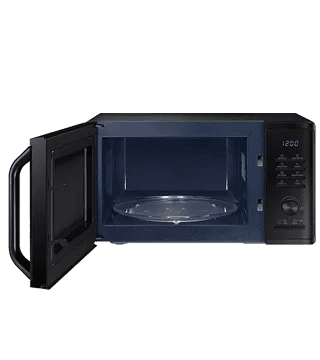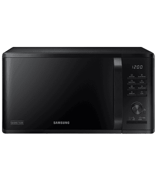 Micro-ondas Samsung de 23L com Quick Defrost, comandos eletrónicos e interior em cerâmica fácil de limpar.